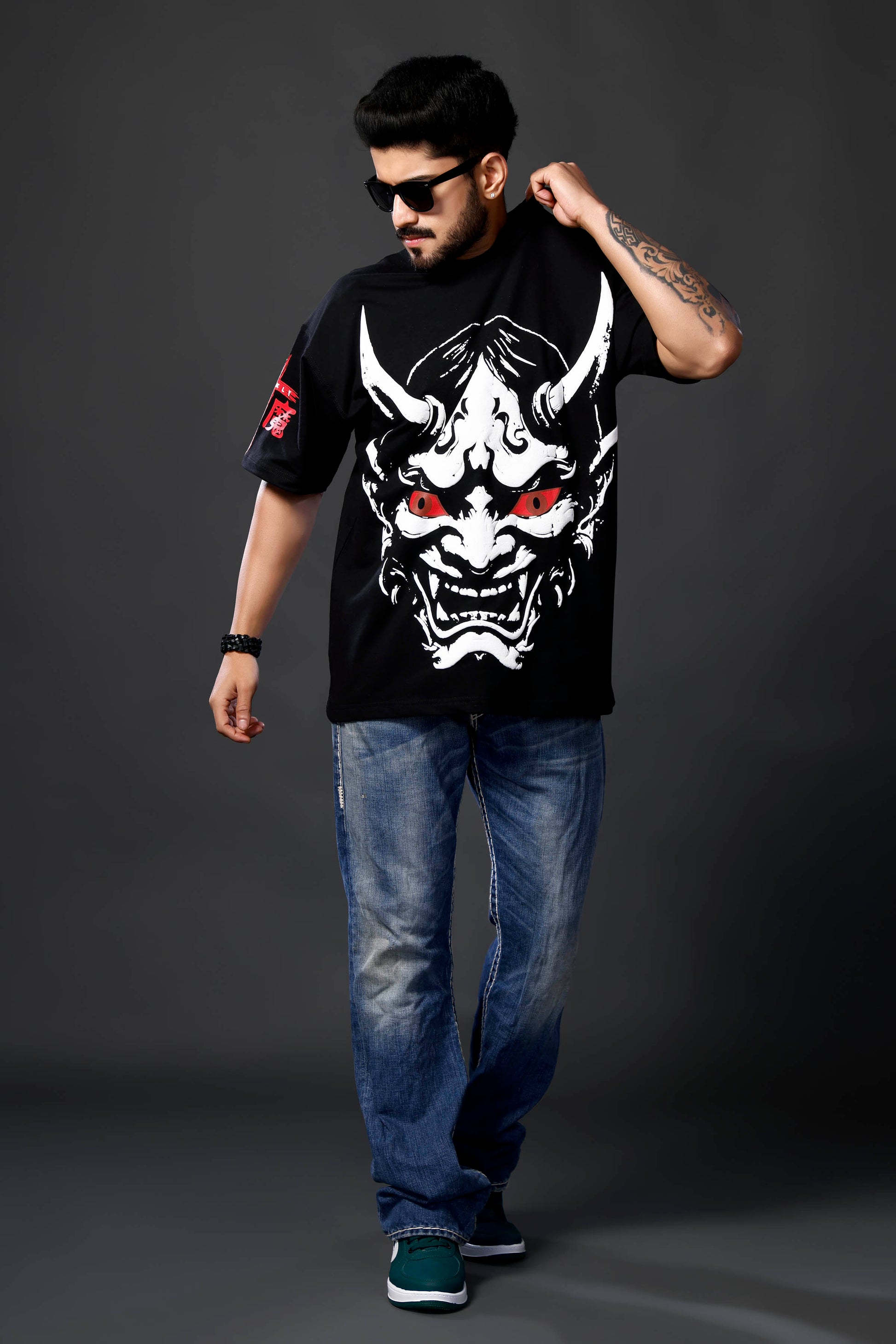 Japanese Devil Face T-Shirt | Gothic Streetwear for All Seasons