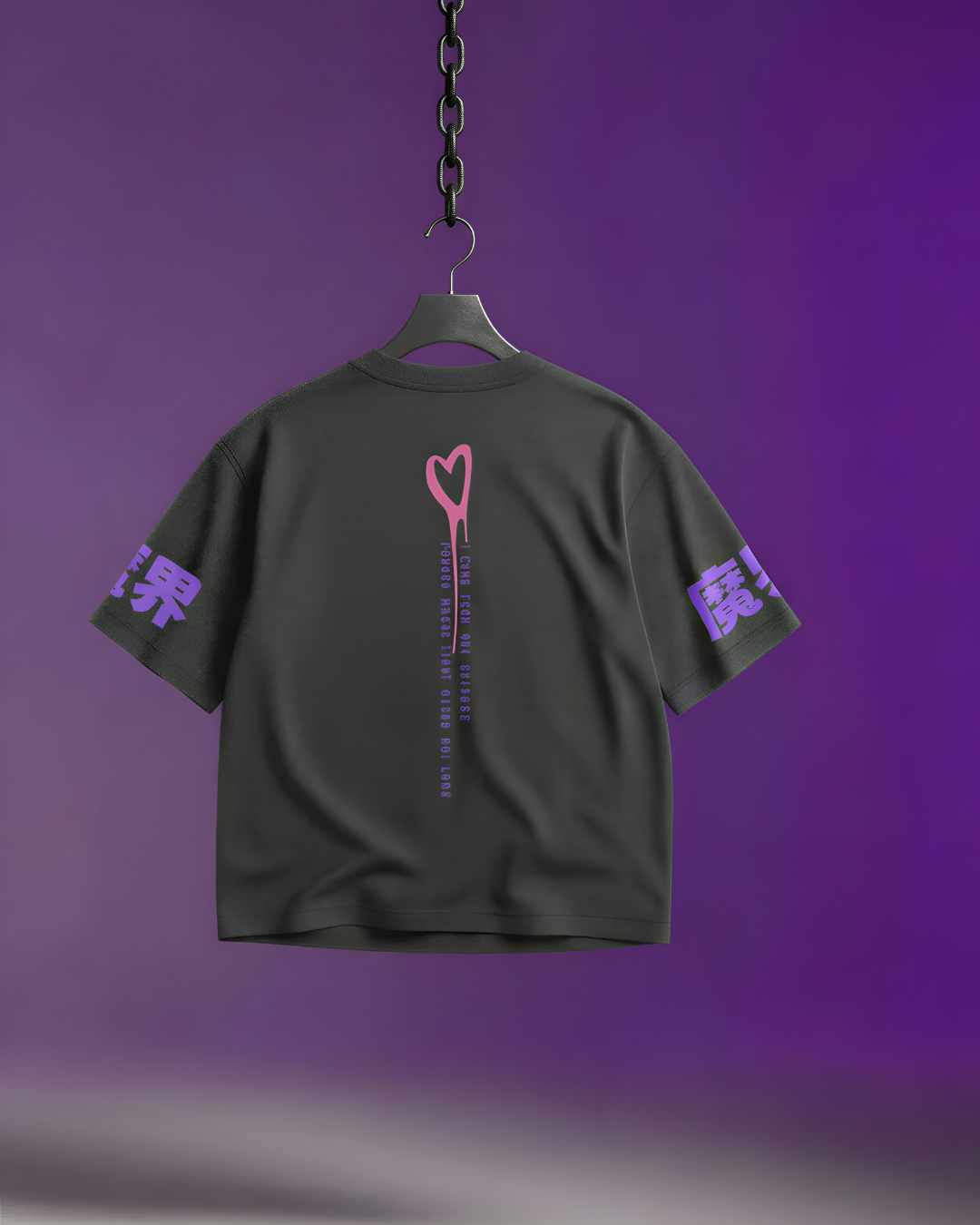 Set on a charcoal 260 GSM heavyweight base, HELL’S CANDY plays with temptation and decay. Soft blues melt into dangerous pinks — a sugar-coated lie hiding something darker underneath. What looks playful at first glance lingers a little too long… and starts staring back.