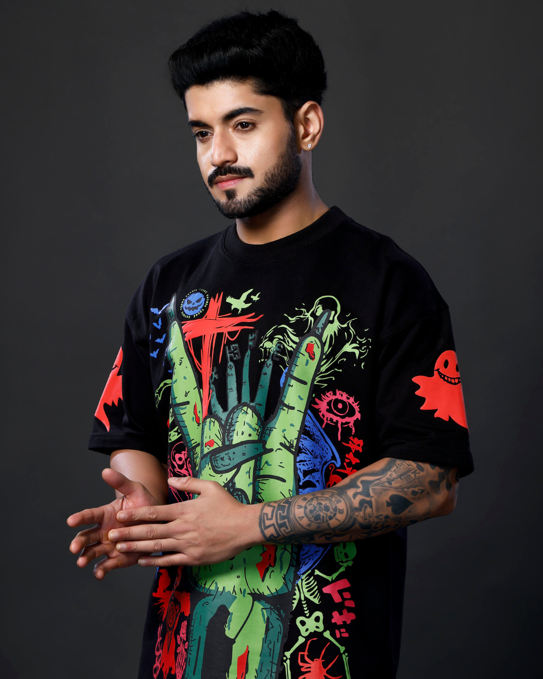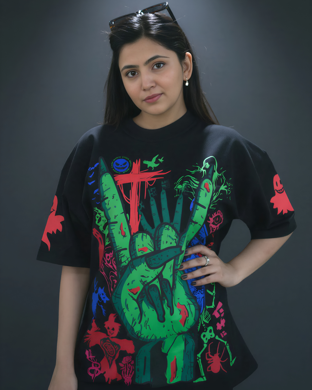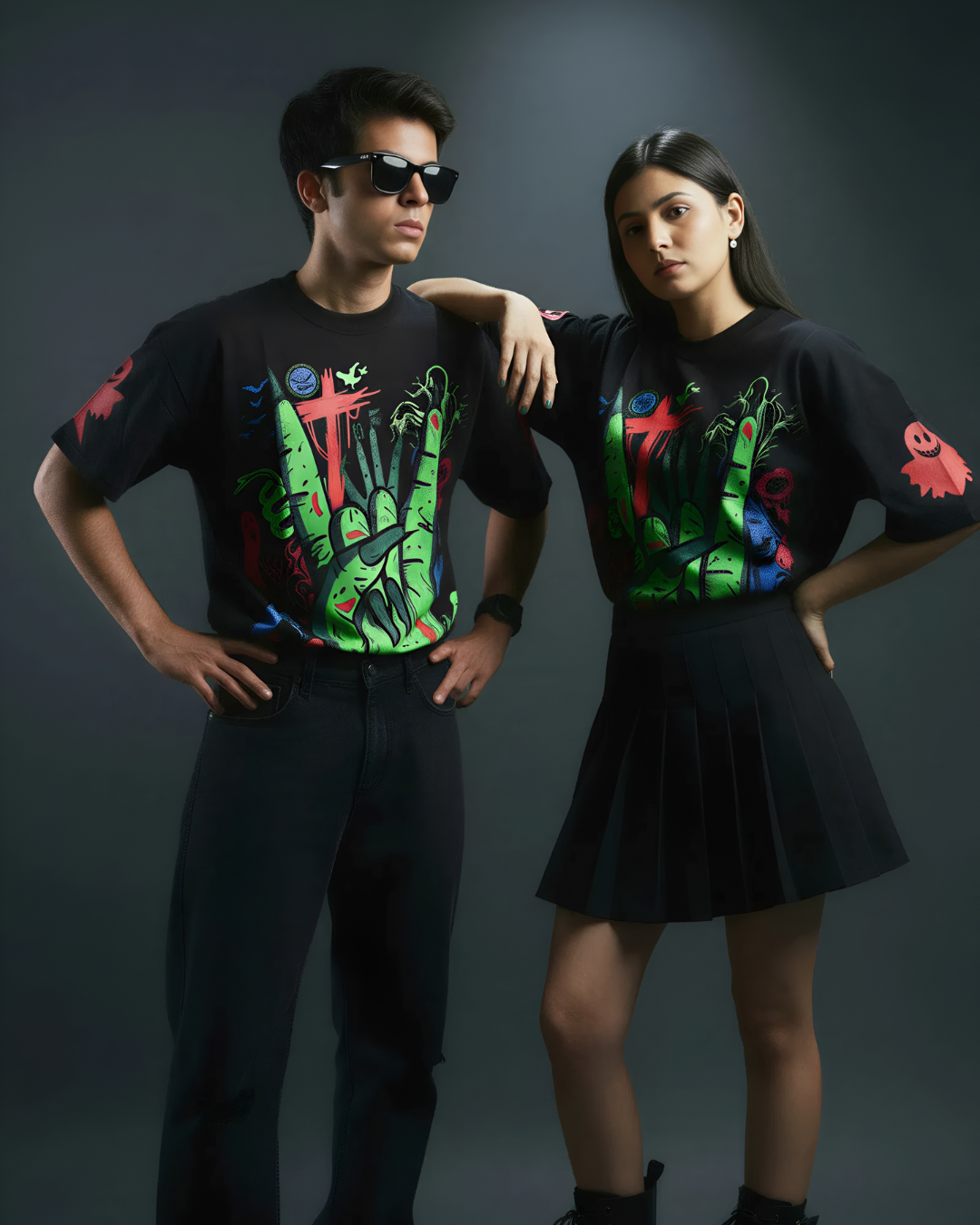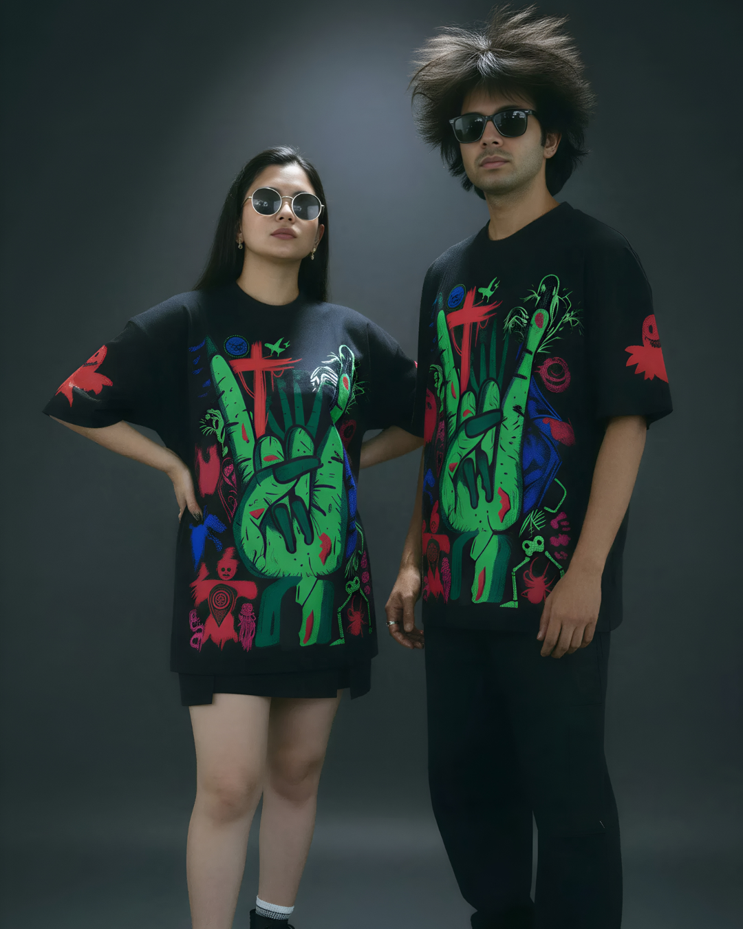 Its oversized boxy shape and soft yet structured 260 GSM cotton make it suitable for year-round wear—from night outs to creative shoots. Let your outfit speak your truth: bold, dark, and unafraid.