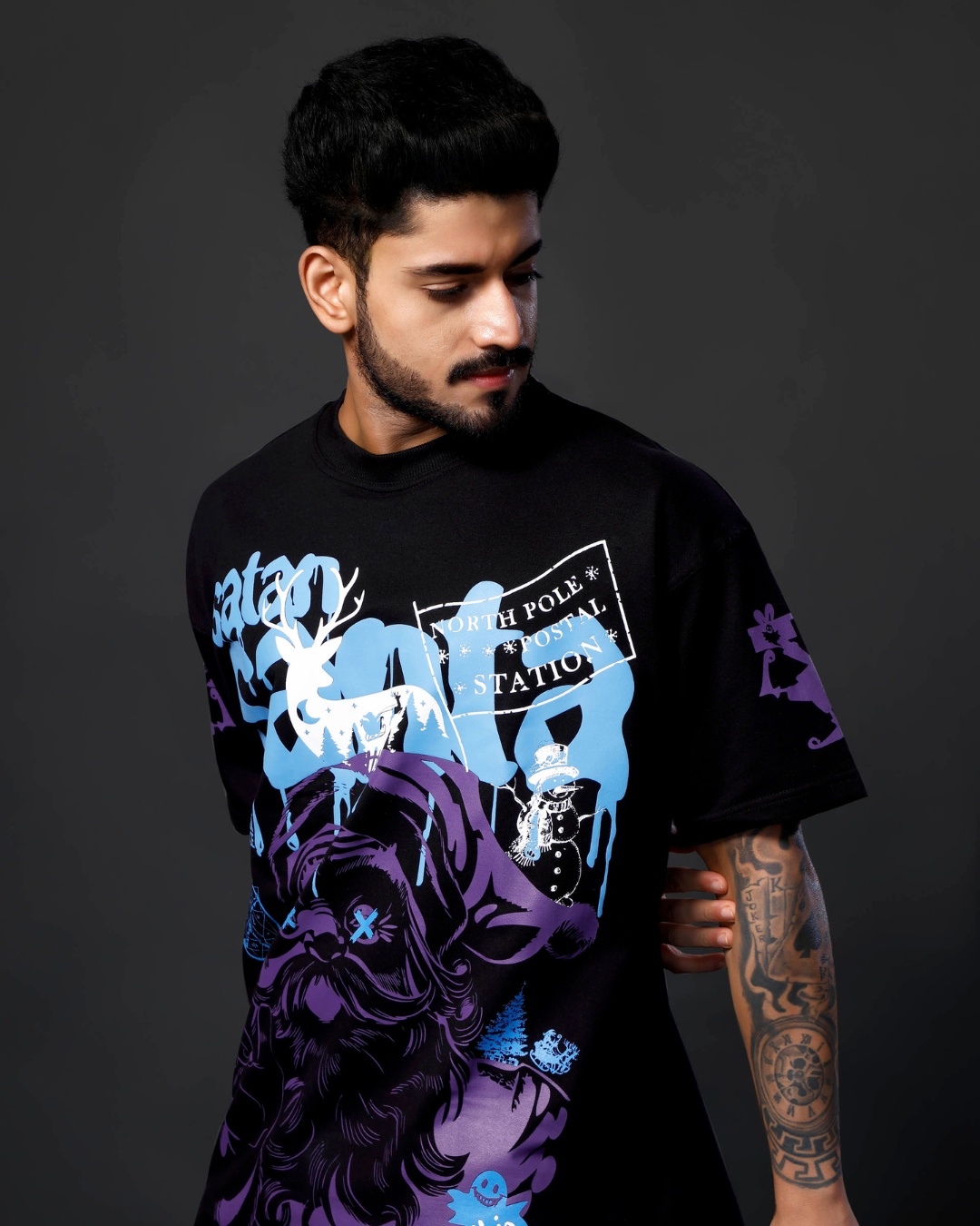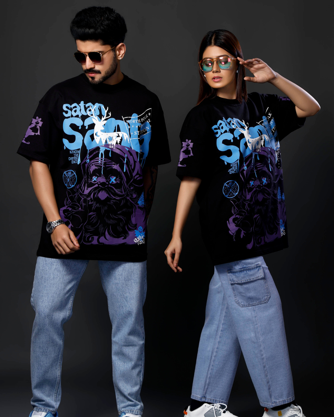 Why choose between naughty and nice? The Satan or Santa Oversized T-Shirt cleverly fuses gothic humor with a thought-provoking twist. Its design challenges the norms of good vs evil—perfect for rebels with range.